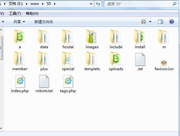 先在PHPstudy的安装路径下(即www文件)新建一个文件夹,名字随意。我在这建的文件夹名字是“50”,然后是织梦程序的安装。