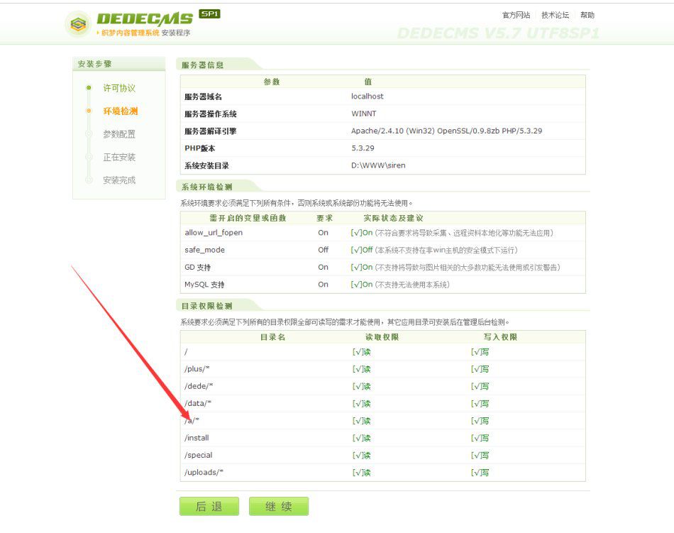 进入到下一步,需要注意的是如果你的文件夹里面没有“a”这个文件夹,这里的/a/*就会是红色的,不必管他,里面没有任何文件,没有影响,至于作用后面再讲。点击继续