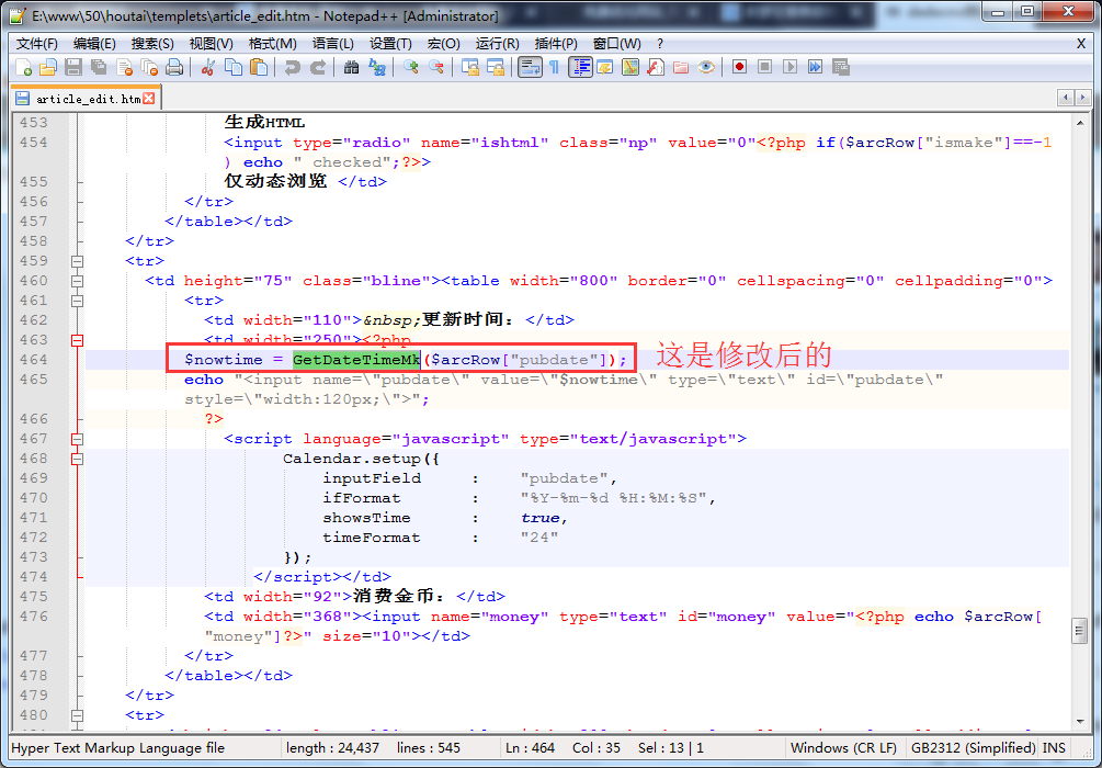 下面我们说下织梦修改文章内容而不修改发布时间的方法: